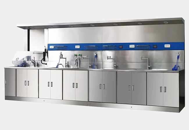 应配有污物回收器具、分类台、手工清洗池、压力水枪、压力气枪、超声清洗装置、干燥设备及相应清洗用品等。